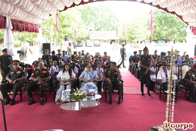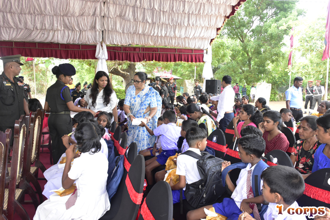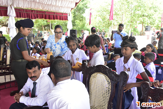 Under the guidance of the President of the Army Seva Vanitha Unit, Mrs. Swendrini Rodrigo, 1 Corps organized a School Equipment Donation Programme at Kn/Thiruruvalluvar Primary School, Malayalapuram, on 7th November 2025. A total of 40 students from low-income families benefited from the programme by receiving essential school supplies. The President of the Seva Vanitha Branch of the Commando Regiment, Mrs. Samindi Wickramarathne, made a generous contribution towards the donation, further enhancing the success of the initiative. Major General KHMS Wickramarathne RSP, Commander of 1 Corps and Colonel of the Regiment – Commando Regiment, graced the occasion as the Chief Guest. Concluding the event, all students and parents in attendance were hosted for a tea session followed by delicious lunch packets, marking the end of a meaningful and heartwarming community engagement.