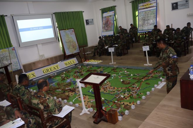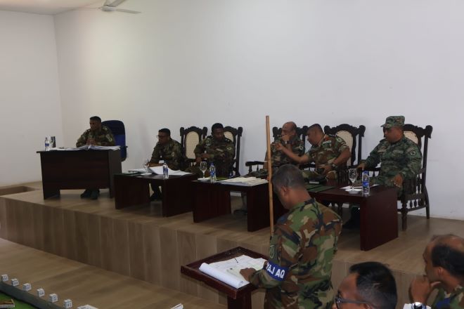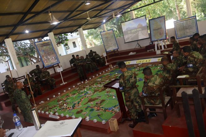 Tactical Exercise Without Troops (TEWT): The exercise culminated in a TEWT at Kodayana in Siyambalanduwa, where Student Officers walked through their finalised plans in the simulated environment, role-playing command decisions and adjusting strategies in real time. This no-troop format allowed them to practice the high-stakes decision-making that will define their roles as battalion commanders, with room for feedback and growth.