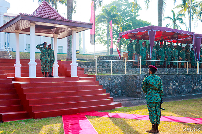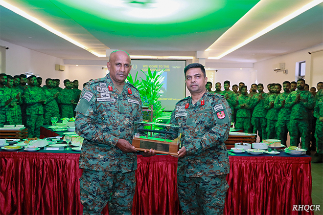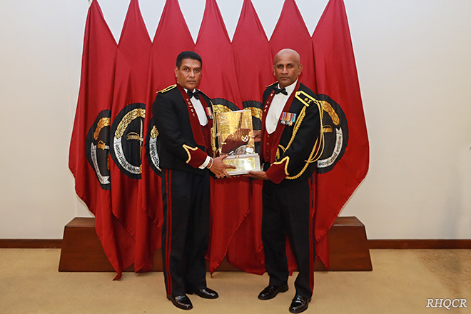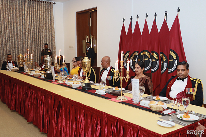 As the final segment of the day’s programme, a farewell dinner was held at the Officers’ Mess, attended by the Major General K H M S Wickramaratne RSP - Master General Ordnance and Colonel of the Regiment, Major General H D L S Perera RWP RSP ndc - General Officer Commanding 22 Infantry Division, Major General S P Wickramasekera RWP RSP USP psc - Director General Overseas Operations, Major General G S K Perera RSP ndc, Brigadier General Staff Security Forces Headquarters (West), Senior Officers and Officers of the Commando Regiment.