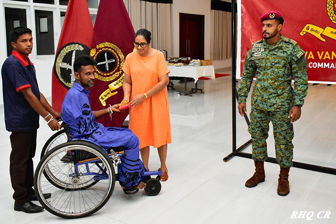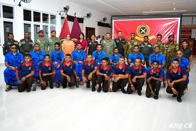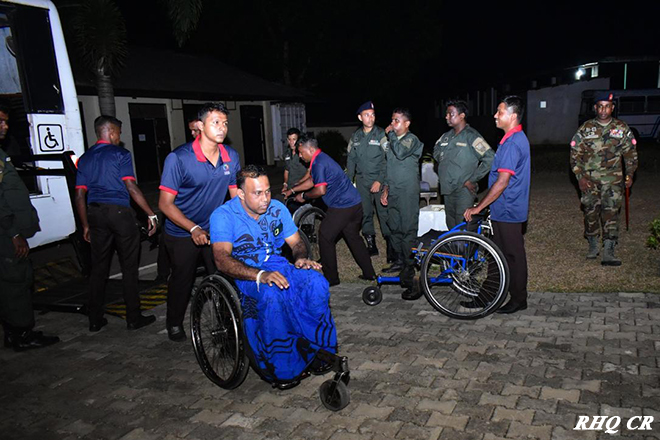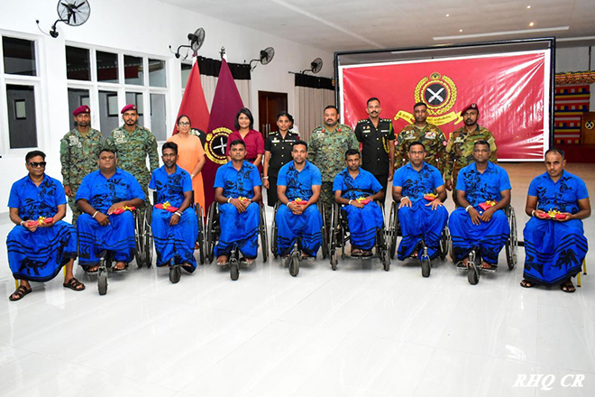The Seva Vanitha Branch of the Commando Regiment, under the guidance of the Colonel of the Regiment, Commando Regiment and Commander 1 Corps, Major General K H M S Wickramaratne RSP, and the leadership of its President, Mrs Samindie Wickramarathne, extended a warm welcome to the disabled war heroes of Abimansala II, Kamburupitiya, at the Regimental Headquarters, Ganemulla, during their annual trip on 14 September 2025 at 2000 hrs.