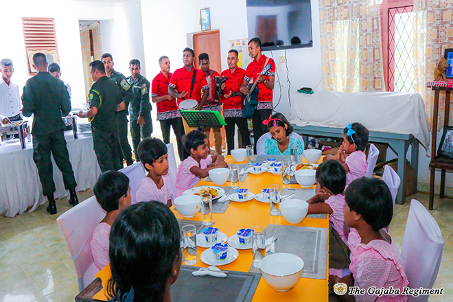 Religious observances were held at the RuwanweliMahaSaya, KelaniyaRajamahaViharaya and PanagodaBhodhirajaramaya, invoking blessings and transferring merit to the fallen leader. In parallel, the Regiment conducted a charity programme at a children’s orphanage in Saliyapura, offering meals to the children and staff as an act of merit and a testament to its enduring commitment to community welfare.