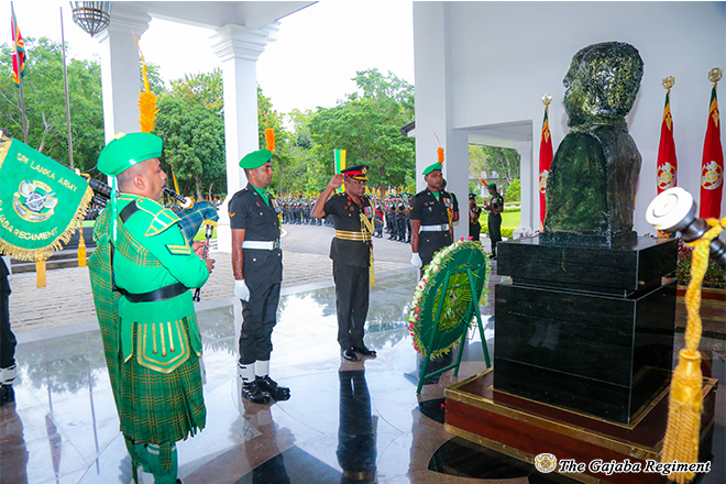 The commemorations concluded with a final floral tribute at the statue of the Founding Father at the Gajaba Regimental Centre, where all officers and men of the Regiment paid their respects to a leader whose legacy continues to inspire courage and dedication within the Sri Lanka Army.