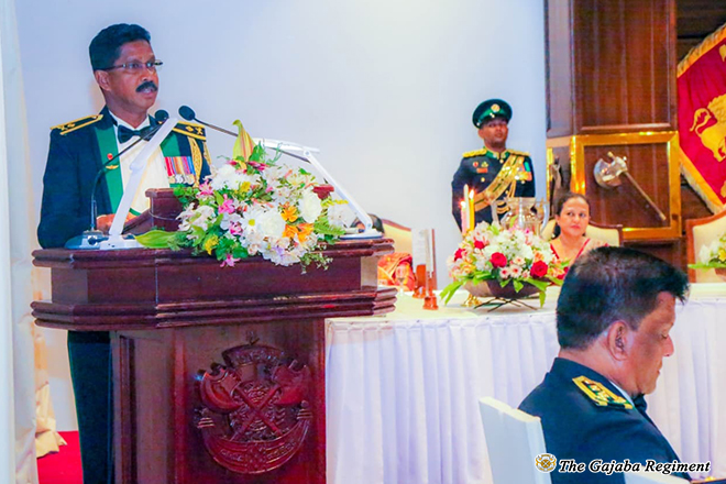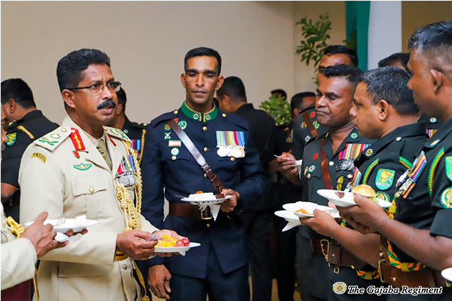 The Colonel of the Regiment and all members of the Gajaba Regiment hosted a vibrant Farewell Parade and Dinner on 14 September 2025, in honour of Major General Wishwajith Vidyananda RWP RSP USP marking the conclusion of his distinguished military service spanning over 34 years. The ceremony commenced with a customary Guard Turnout, followed by a floral tribute at the statue of the late Major General W I V K M Wimalarathne RWP RSP VSV USP psc. The retiring veteran Keterian was then honoured with a colourful parade at the regimental parade ground, recognizing his dedicated and outstanding service to the Gajaba Regiment. Following the parade, a group photograph and an all ranks tea was held to mark the occasion, signifying growth, legacy and camaraderie. Later that evening, a grand farewell dinner was held at the Officers’ Mess of the Gajaba Regiment. This dignified event provided an opportunity for officers to express their gratitude and pay tribute to the legacy of Major General Wishwajith Vidyananda RWP RSP USP, celebrating his leadership, service and achievements with deep respect.