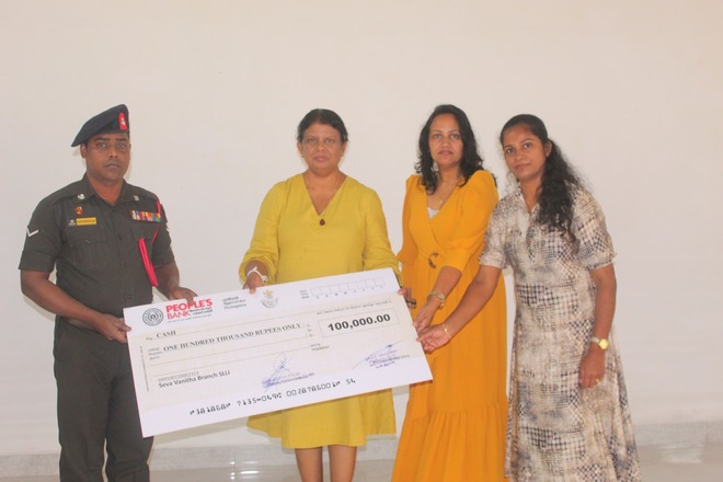 Under the guidance and direction of the Deputy Chief of Staff of the Sri Lanka Army and Colonel of the Regiment Sri Lanka Light Infantry, Major General Y A B M Yahampath RWP RSP ndu psc and the Honourable Chairperson of the Seva Vanitha Branch, Mrs. Darshani Yahampath, A monetary donation of Rs. 100,000.00 was made on 13 January 2026 at the 5(V) SLLI camp premises. This donation is intended to facilitate the construction of a bathroom to meet the sanitary needs of the fully disabled son of S/D101978 L/Cpl Dissanayake DN of the 5(V) SLLI.