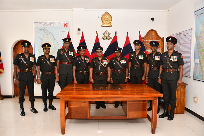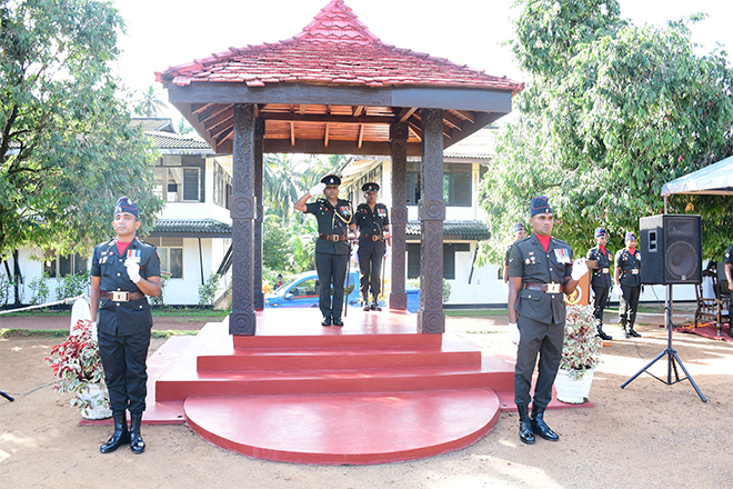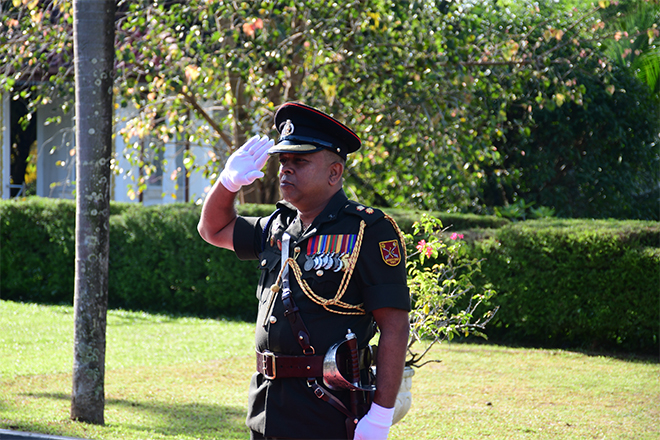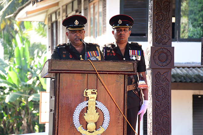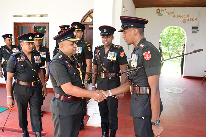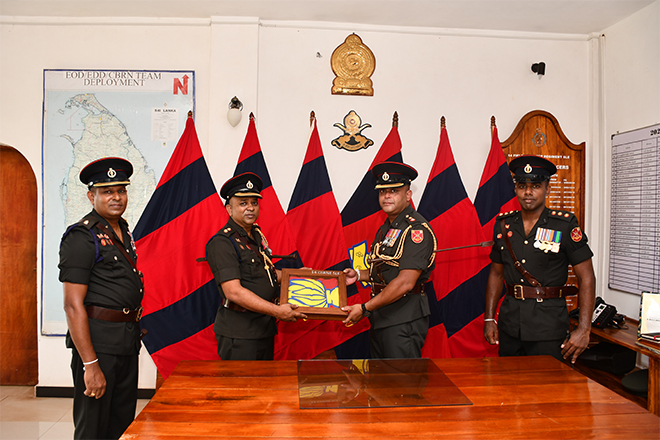 Upon his arrival, the outgoing Commanding Officer was warmly welcomed by the Second in Command of the 14 CBRNE Response Regiment, Major G G A S P K Ganegoda SLE, and was honoured with a traditional Guard Turnout at the main entrance followed by the Battalion parade.