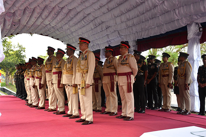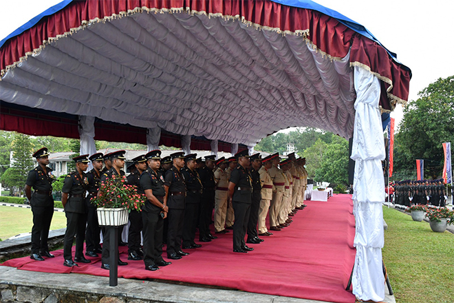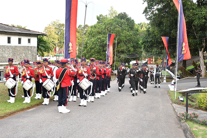 Major General D K S K Dolage USP nps psc, Chief of Staff of the Sri Lanka Army and Colonel Commandant of the Corps of Sri Lanka Engineers, graced the occasion as the Chief Guest. He placed the first wreath at the War Heroes Monument, honoring their memory as the sounds of bagpipes filled the air. This moment, marked by grief and gratitude, was witnessed by a steadfast monument that stands as an immortal testament to the nation’s war heroes. Following the Chief Guest, Council Members, Commanding Officers and Regimental Sergeant Majors, laid floral wreaths in tribute.