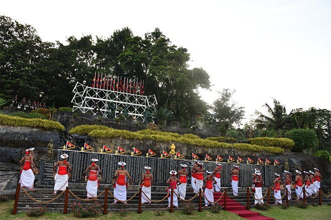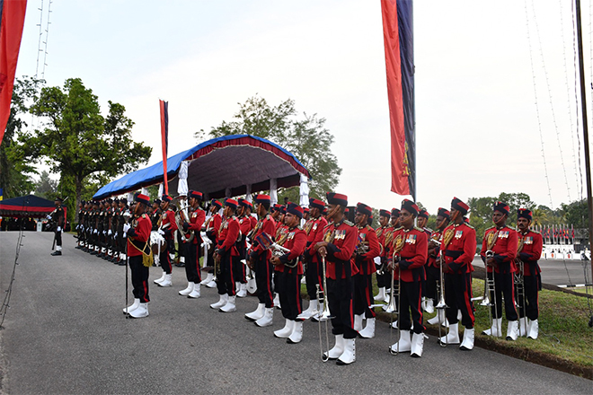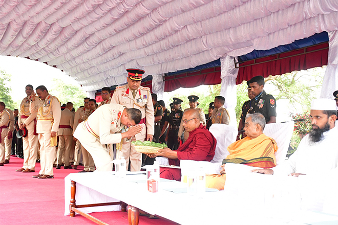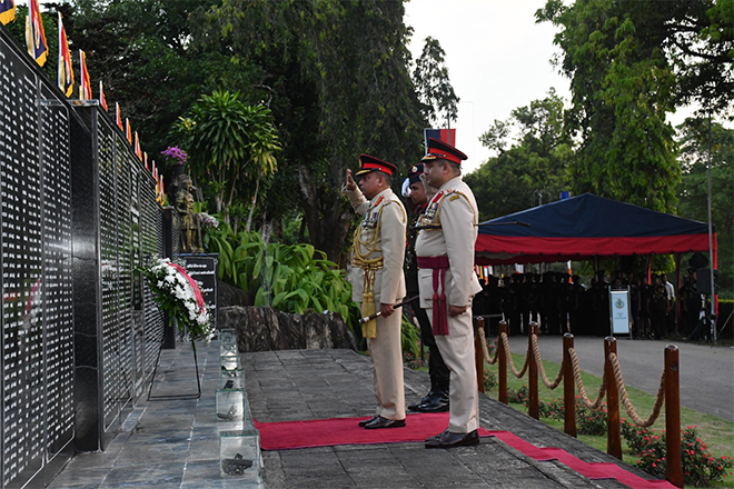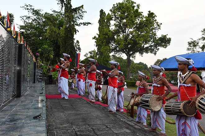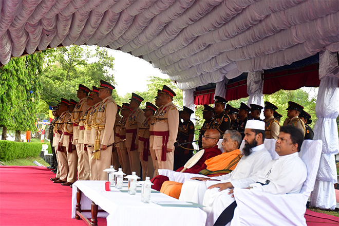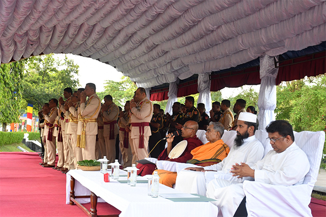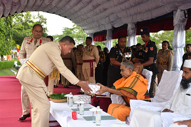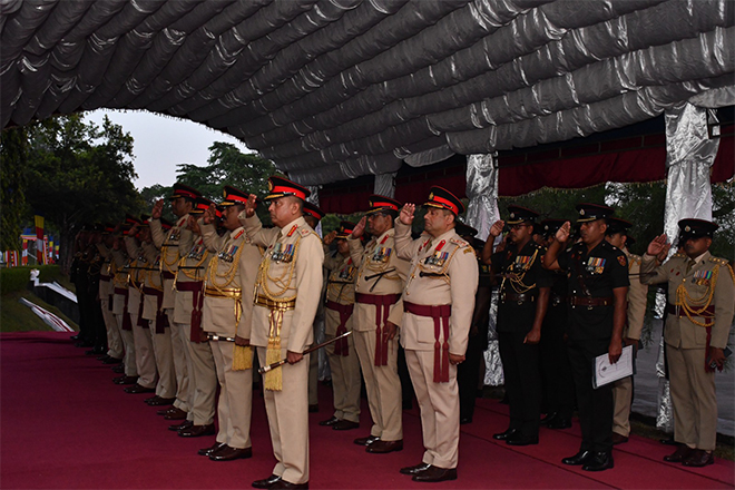 The ceremony commenced with the lighting of the monument lamp, symbolizing eternal remembrance for those who made the ultimate sacrifice. A brief interfaith sermon by Buddhist, Christian, Hindu, and Islamic clergy invoked blessings on the fallen Sapper Soldiers, setting a respectful tone for the observance. A two-minute silence followed, allowing all present to collectively reflect on the sacrifices of the war heroes. The solemn silence was accompanied by the stirring sounds of the traditional "Ranabera Wadanaya," a military musical tribute that underscored the courage and spirit embodied by the fallen heroes.