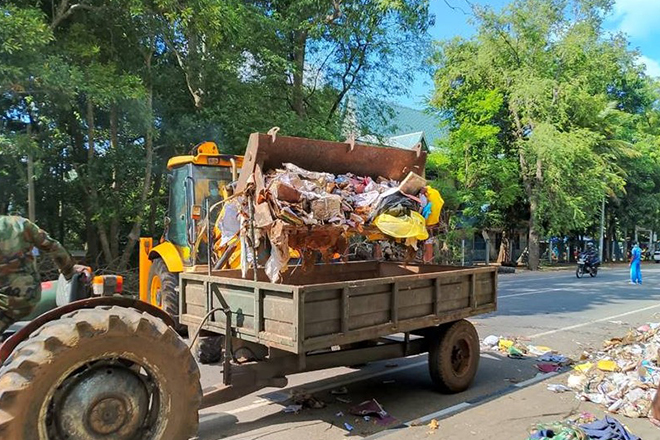 Among the immediate humanitarian interventions, Engineer troops were deployed to remove large volumes of garbage, mud, and flood-deposited debris in heavily affected areas, including the Kolonnawa General area and the Anuradhapura Hospital premises. These operations were vital in restoring sanitation, preventing secondary health risks, and enabling the uninterrupted functioning of critical medical services in flood-hit regions.