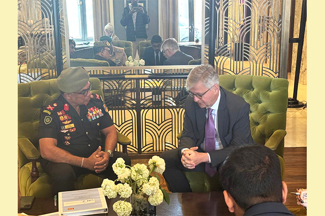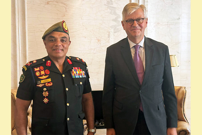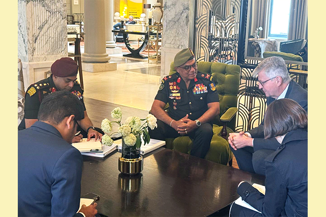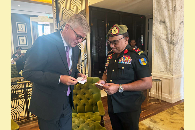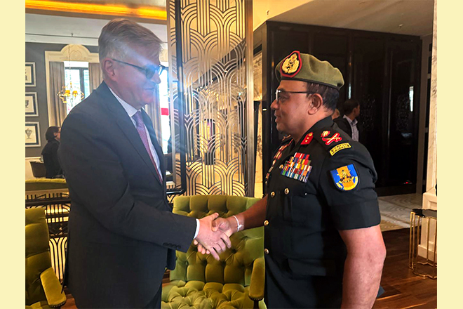 Major General Lanka Amarapala RWP RSP ndc psc, Deputy Chief of Staff of the Sri Lanka Army, met with Mr. Jean-Pierre Lacroix, United Nations Under-Secretary-General for Peace Operations, on the sidelines of the 2025 UN Peacekeeping Ministerial in Berlin on 15 May 2025.