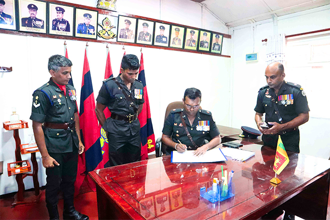On arrival, new Commanding Officer was welcomed by Major S A A H Dias RSP SLE, the Second in Command, and was honored with a Guard Turnout, showcasing the Regiment’s deep-rooted military traditions.