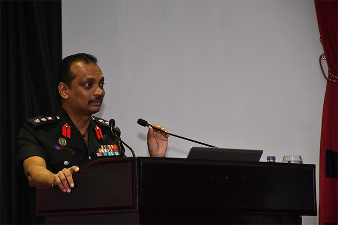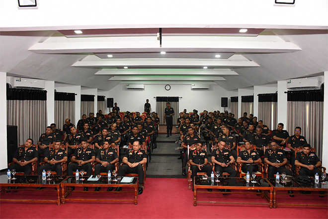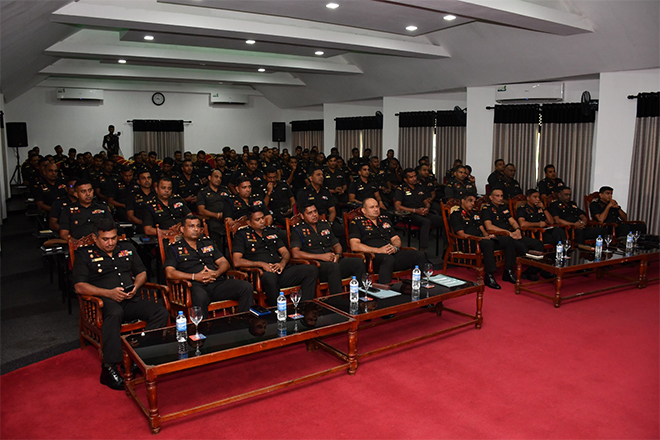 An important knowledge-sharing session formed the academic component of the programme, featuring a lecture on “Audit Board Procedure and Preventing Misappropriation of Funds” delivered by Colonel R M Balasuriya USP, Director, Directorate of Internal Audit. The session emphasized the responsibilities of officers in maintaining transparency, integrity, and sound administrative practices in financial and accounting matters within military institutions.
