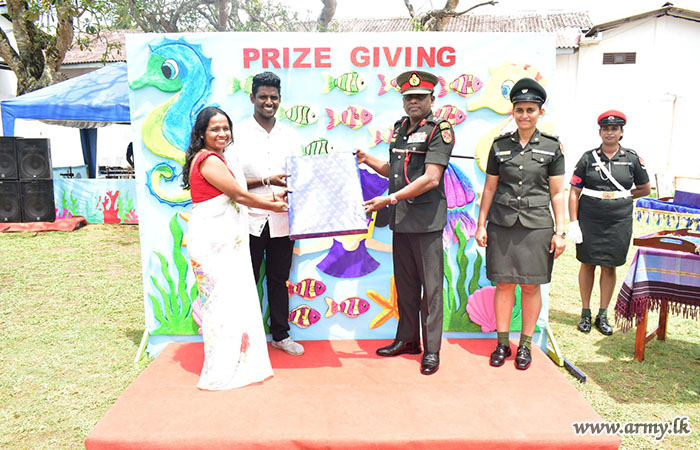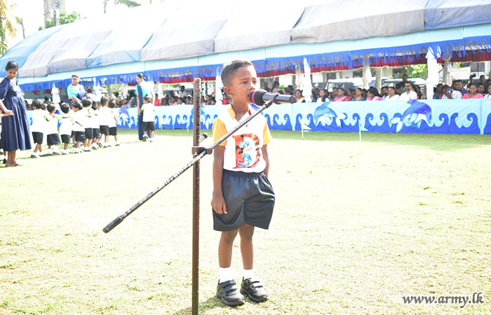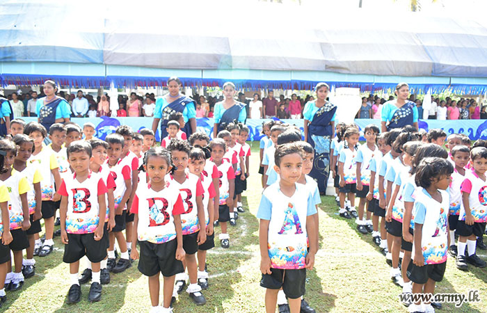 The Chief Guest was warmly welcomed by the children, together with Major General K.T.P De Silva RSP ndu psc, General Officer Commanding, 61 Infantry Division.