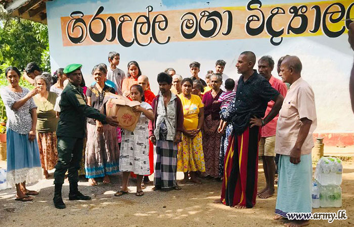 The distribution of relief items was carried out with the coordination of Security Forces (Central) and 111 Infantry Brigade, ensuring timely and effective assistance to affected residents in the areas of Gampola, Kuruduwaththa, Girawulla, Ambalanpitiya and Pahala Gampaya.