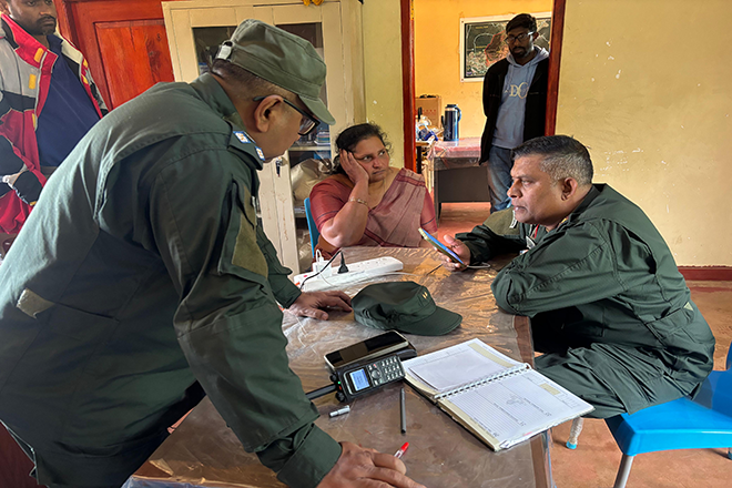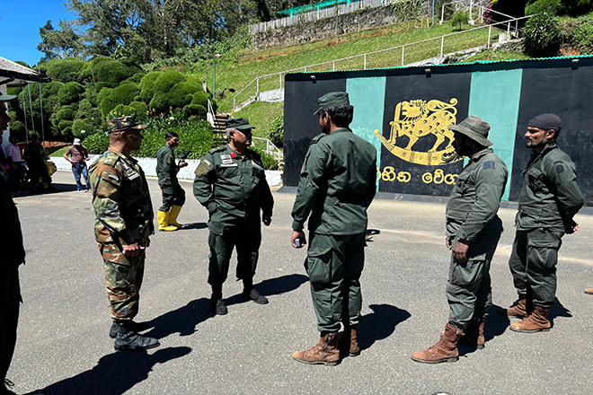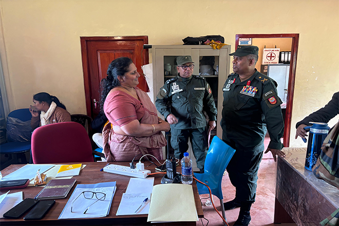 On 29 November 2025, Major General KAWNH Bandaranayake USP, Commander Security Forces (Central), conducted a field visit to the Nuwara Eliya District, which falls under the Area of Responsibility of Security Forces Headquarters (Central). The visit focused on assessing the prevailing disaster situation in the district and reviewing the necessary future courses of action to be implemented.