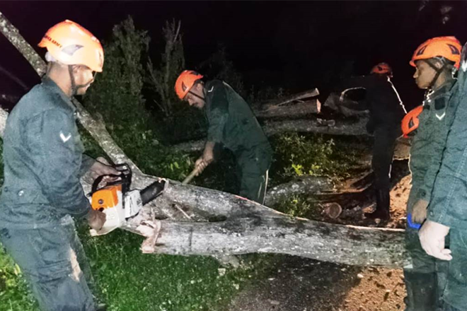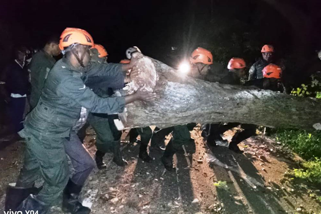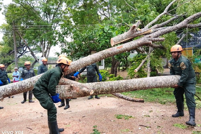 On the Witharandeniya–Pattipola and Witharandeniya–Kasagala roads, several trees had fallen onto power lines. A contingent of 00 x 25 troops from 3 Sri Lanka National Guard was deployed to remove the debris and restore the affected road sections to normal condition. Army troops continue to extend uninterrupted emergency relief assistance to the affected civilian population