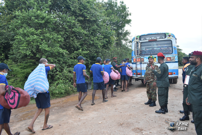 Under the guidance of the Commander, Security Forces – East, Major General J.S.B.W. Pallekumbura RWP RSP ndu psc, a total of 299 inmates and 11 staff members who had been stranded at the Kandakadu Rehabilitation Centre due to severe flooding caused by the adverse weather conditions were rescued on 29 November 2025.