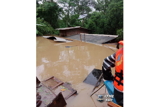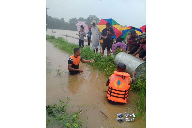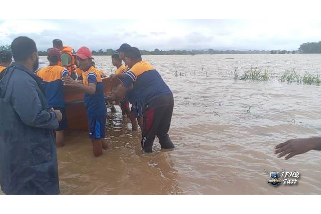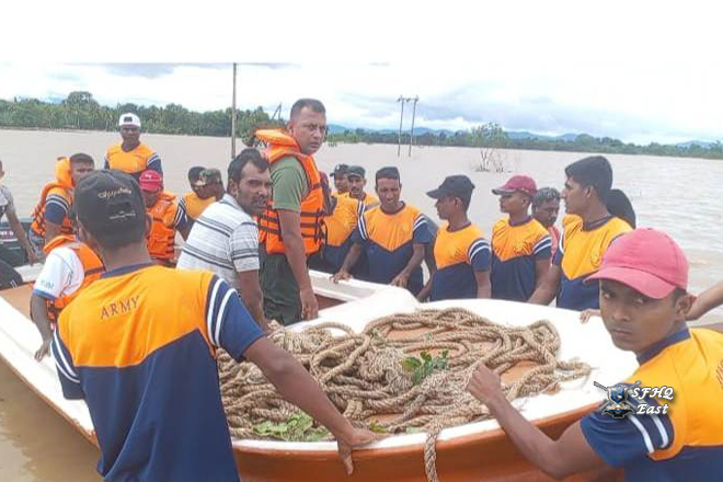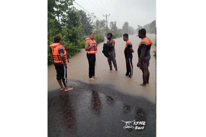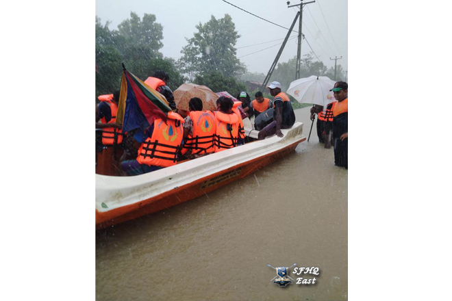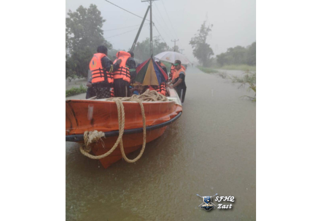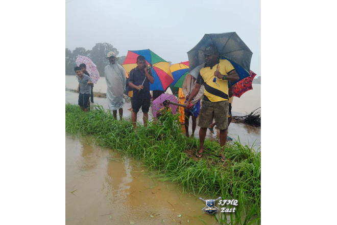 Due to the heavy rains that caused severe flooding in the villages of Ranhelagama, Ellakotaliya, Salpitigama, and Vijayapura under the SFHQ (E) Command, 02 x 40 troops of the 3 (V) Vijayabahu Infantry Regiment rescued a group of residents who were stranded by the flood waters.