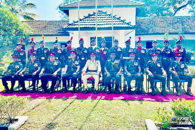 As part of the ceremonial activities, Colonel S J M N S Perera USP posed for a few group photographs with Commanding Officers and his staff and planted a Mango sapling. He also spared a few minutes to address the soldiers who were presented to greet him.