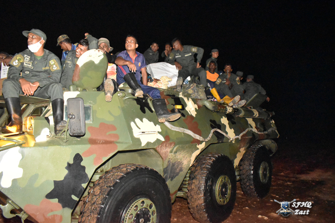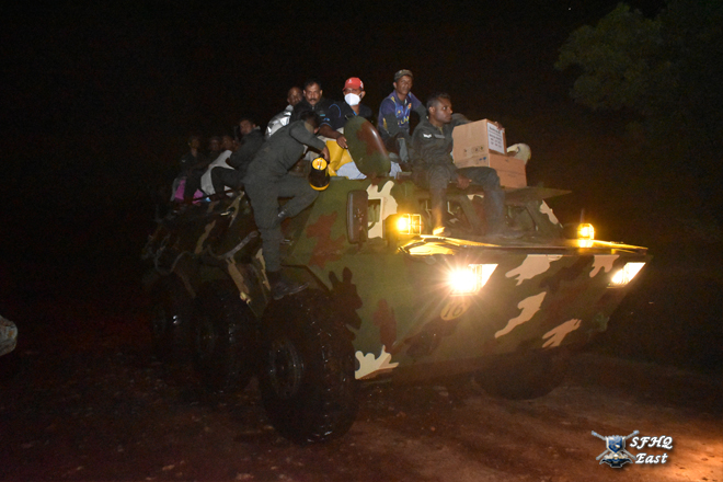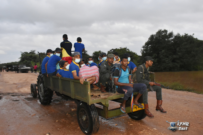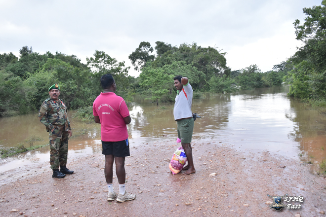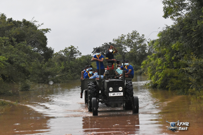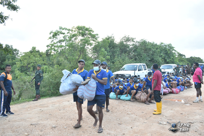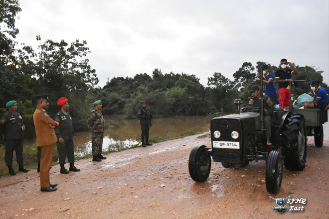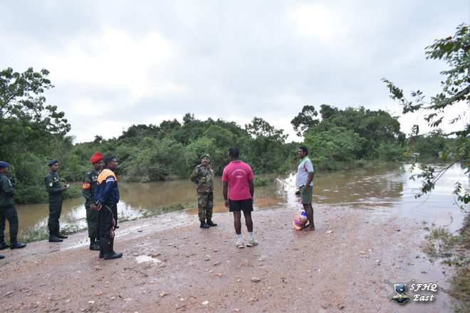 Under the guidance of the Commander, Security Forces – East, Major General J.S.B.W. Pallekumbura RWP RSP ndu psc, a total of 299 inmates and 11 staff members who had been stranded at the Kandakadu Rehabilitation Centre due to severe flooding caused by the adverse weather conditions were rescued on 29 November 2025.