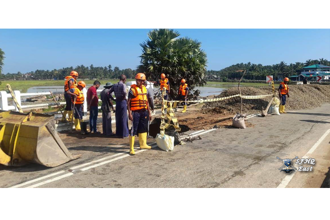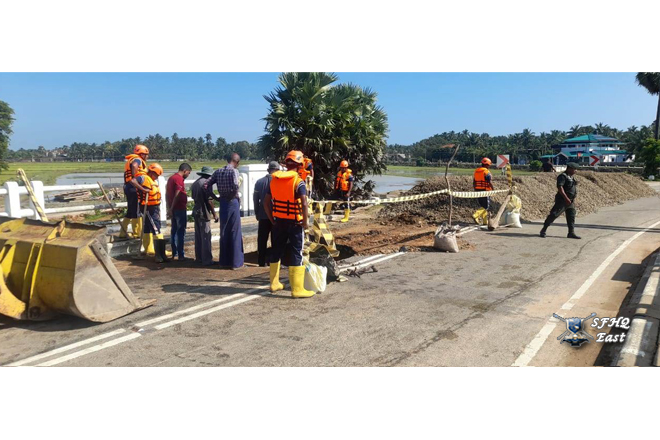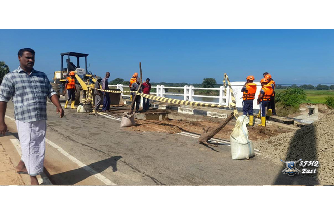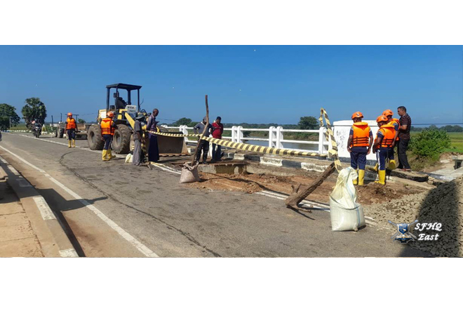 On the instructions of the General Officer Commanding, 24 Infantry Division, Major General K.W. Jayaweera USP psc, a contingent of 01×06 troops from The 14th Sinha Regiment was deployed on 30.11.2025 to assist the Road Development Authority in repairing the Pottuvil -Ulla Bridge, which had been damaged by the heavy rains affecting the 24 Infantry Division area under the control of SFHQ (E).
