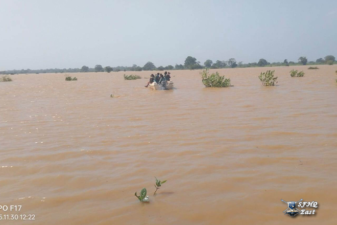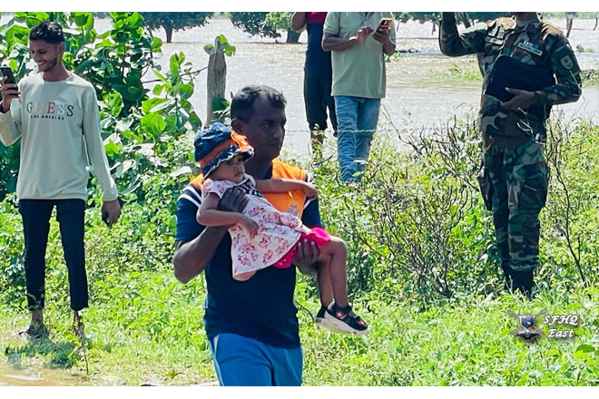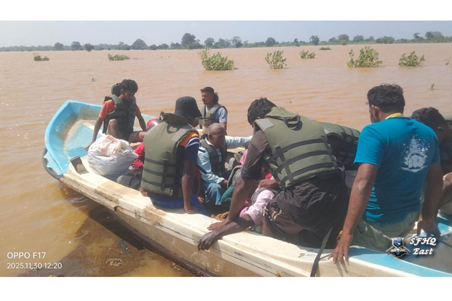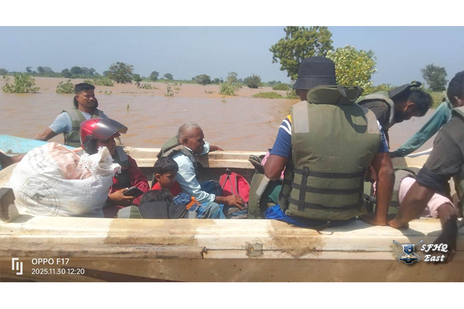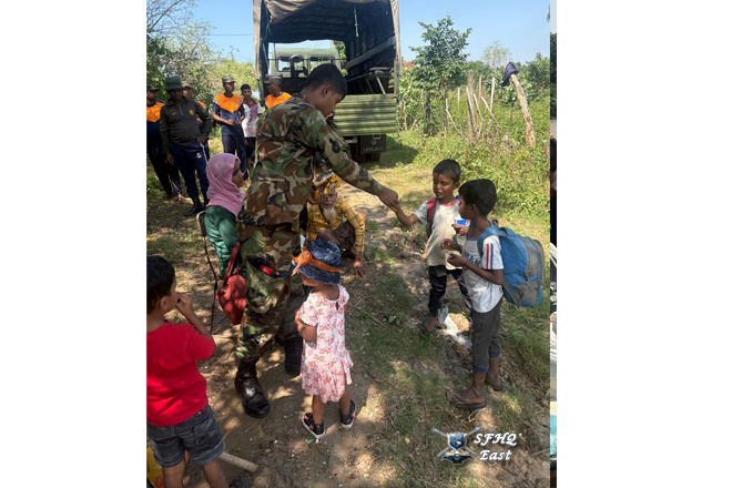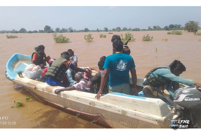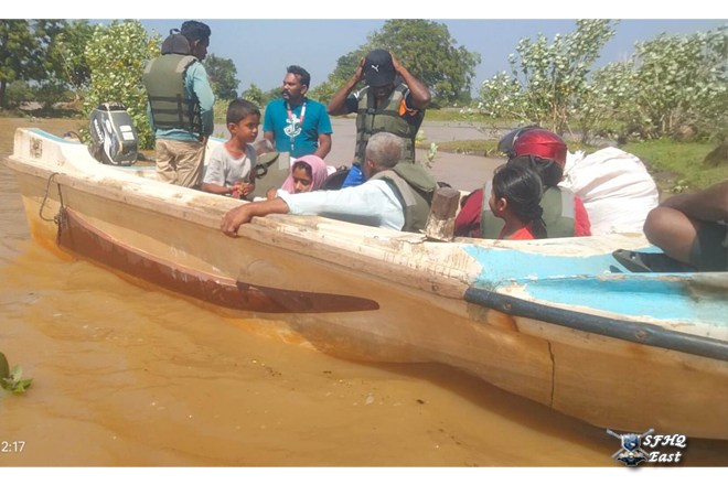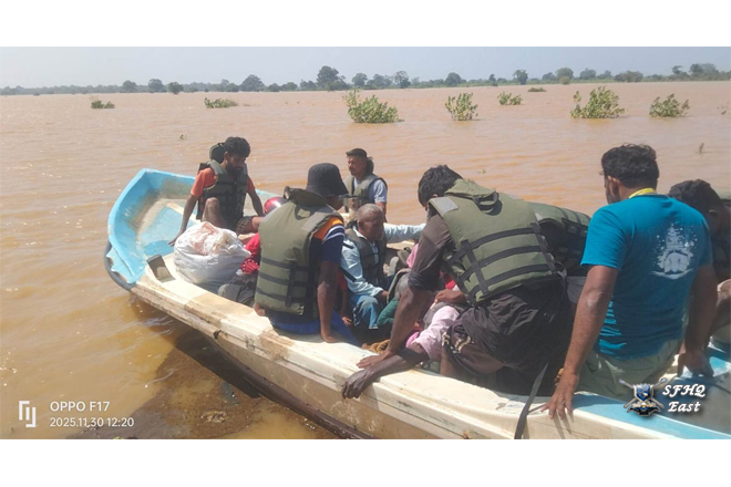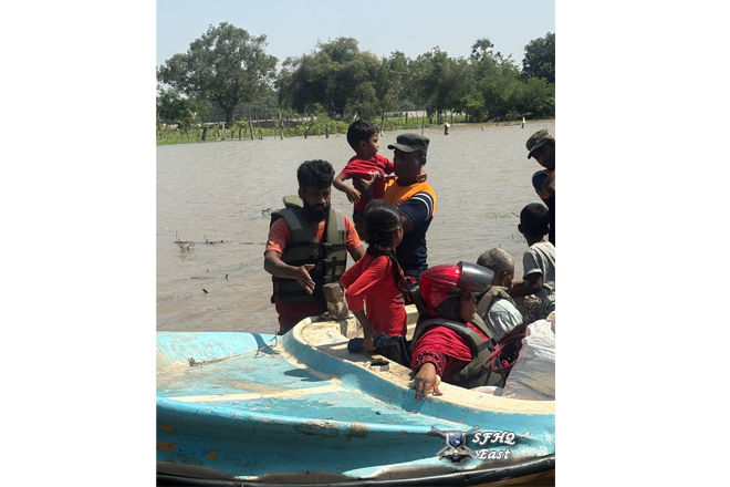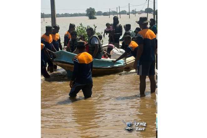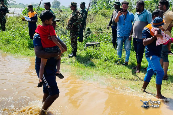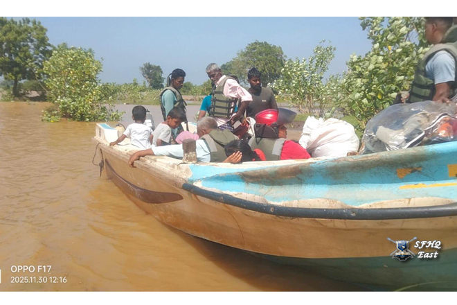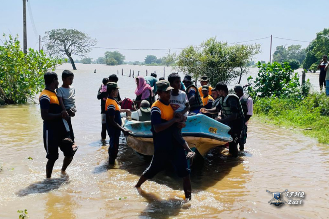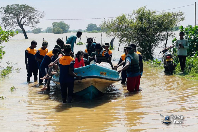 A group of civilians affected by the heavy rains and resulting floods in the 22 Infantry Division area under the SFHQ (E) AOR were rescued on 30.11.2025 by a team of 02 x 15 troops from the 15th Sri Lanka Infantry Regiment. The rescue operation was conducted under the guidance of Major General H.D.L.S. Lalith Perera RWP RSP ndc, General Officer Commanding, 22 Infantry Division. Despite challenging conditions, the troops of the 15th Sri Lanka Infantry Regiment successfully rescued the civilians and transported them to safe locations.