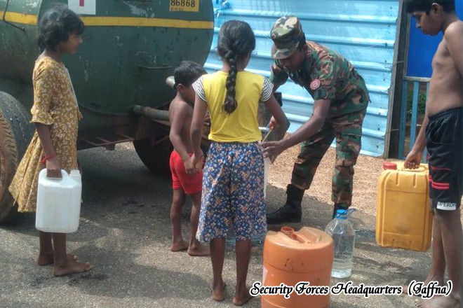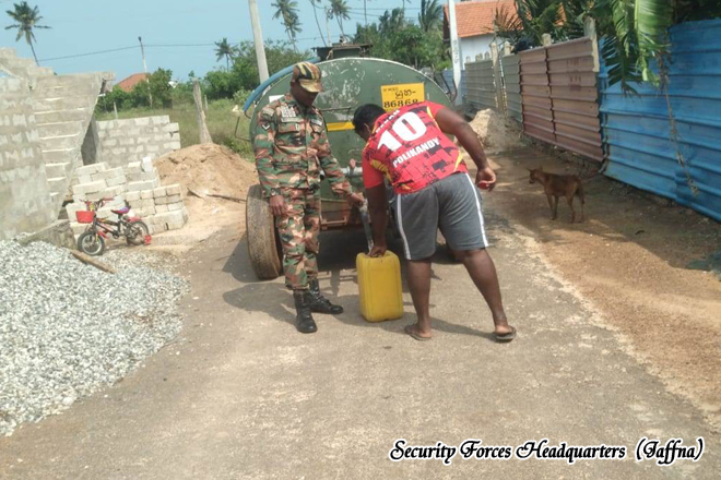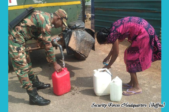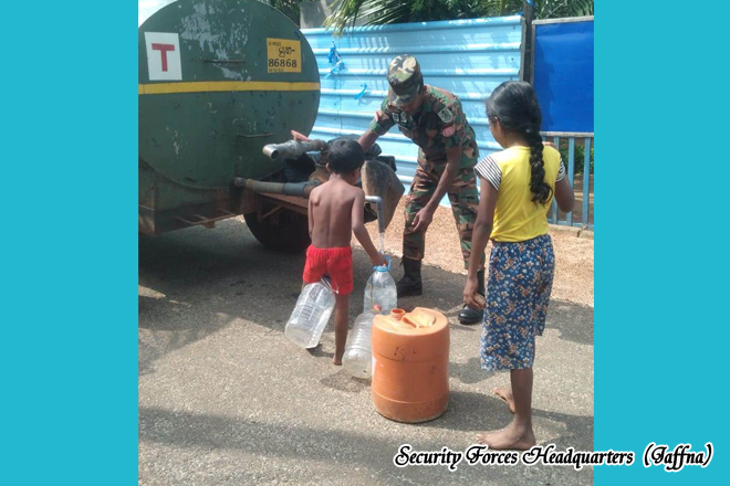 Under the 511 Infantry Brigade, amid persistent adverse weather, troops of the 15 Battalion Sri Lanka National Guard conducted a comprehensive cleaning programme at the flood affected Chunnakam Nageshwari School in Chunnakam West, deploying dedicated manpower to restore safe and hygienic conditions for students and teaching staff. Concurrently, troops of the 9 (V) Sri Lanka Light Infantry operating under difficult weather conditions facilitated uninterrupted access to clean drinking water for affected households in Antonypuram, Palali North, employing a battalion water bowser and assigned personnel to distribute essential water supplies in support of civilian wellbeing.