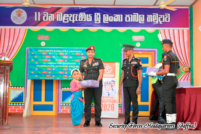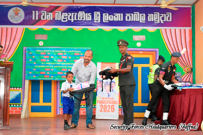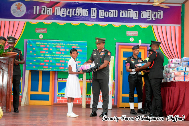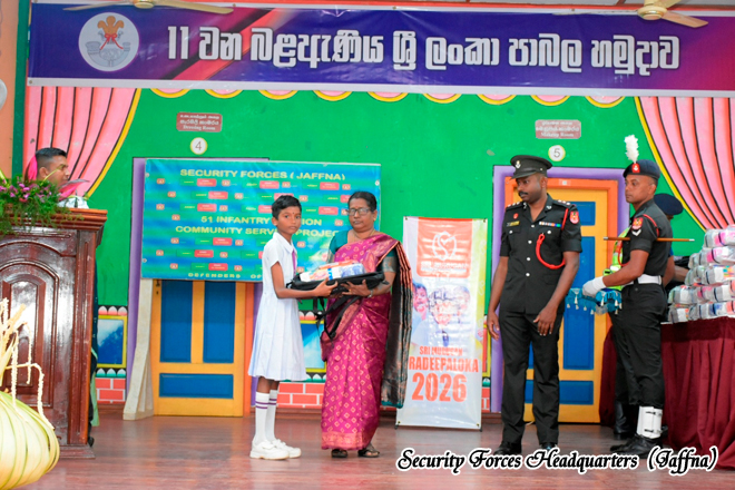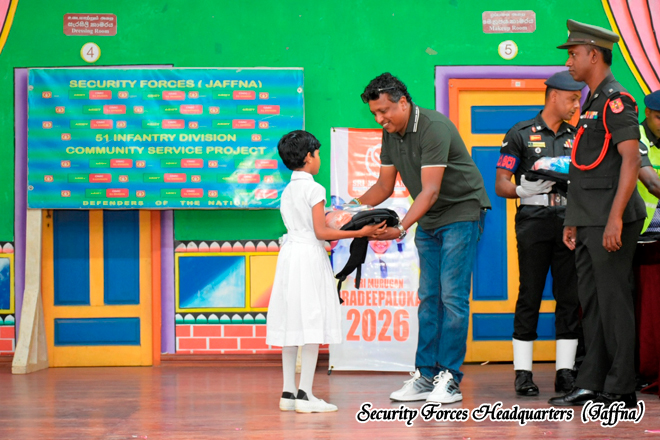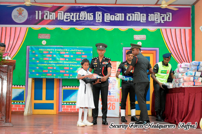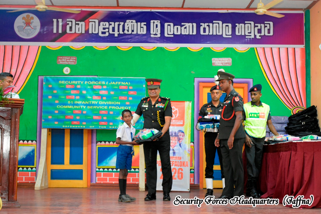 The initiative was organised by the 11 Sri Lanka Light Infantry Battalion under the 513 Infantry Brigade, within the Area of Responsibility of 51 Infantry Division, under the overall guidance of Security Forces Headquarters (Jaffna). The programme aimed to support the educational needs of schoolchildren while strengthening military- civilian relations within the community. The event was sponsored by Sri Murugan Company, Kurunegala, demonstrating a strong partnership between the Sri Lanka Army and the civilian sector in promoting community welfare.