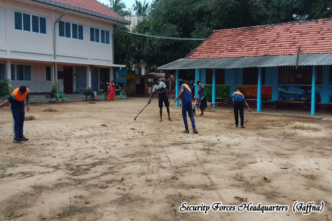 Meanwhile, the 1 Mechanized Infantry Regiment undertook a series of urgent cleanup and restoration tasks at the Kovilvayal CCTM School premises, which had been impacted by heavy rain and flooding. The troops removed accumulated wastewater, cleared garbage, and carried out roof-cleaning and well-cleaning operations to safeguard the health and safety of the schoolchildren and staff.