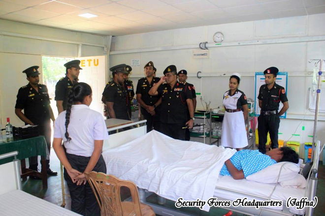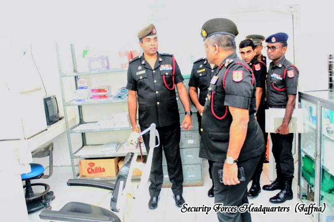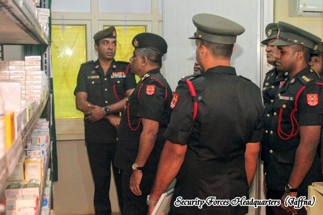 Following the briefing presented by the Commanding Officer, Commnder of Logistics Command, Securty Forces (Jaffna) conducted an inspection of the hospital premises and its respective departments. During the visit, he reviewed the medical services provided by the hospital and observed the current operational status. He offered guidance and instructions on necessary improvements to further enhance the quality of patient care. Thereafter, he addressed the hospital staff, signed the Visitors’ Book and concluded the visit.