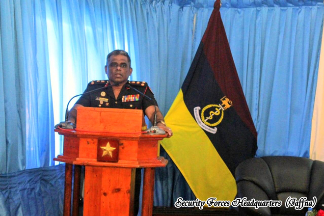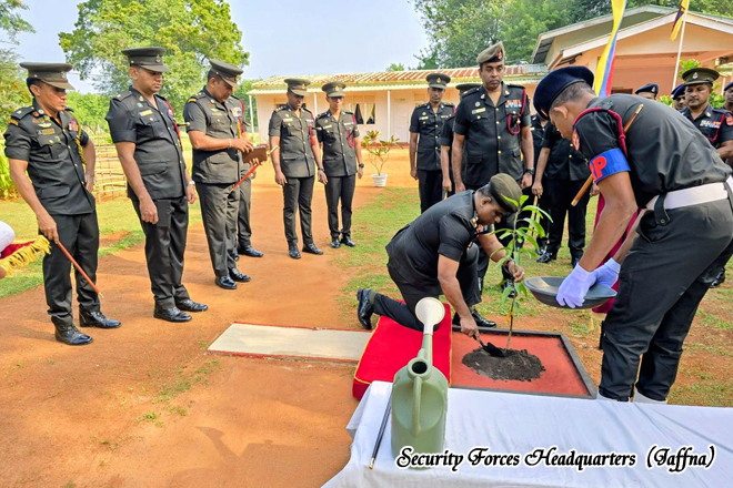 Upon his arrival, the Commander was accorded a ceremonial Drive Pass and he was warmly received by the Commanding Officer of the Army Base Hospital, Palaly Maj PLAA Lekamge. Subsequently, a sapling was planted within the hospital premises, and a group photograph was taken.