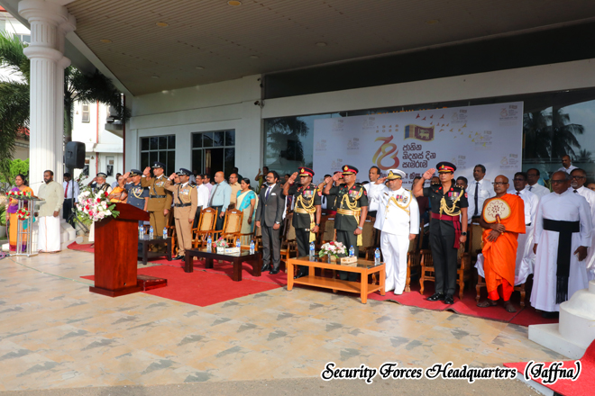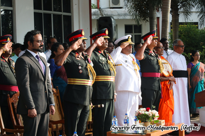 The ceremony was conducted with dignity and patriotic spirit, reflecting the unity, resilience, and pride of the nation. The presence of the Security Forces Commander added special significance to the occasion, symbolizing the unwavering commitment of the armed forces to safeguarding peace, harmony, and national sovereignty in the Northern Province.