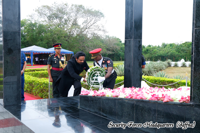 Security Forces Headquarters (Jaffna) in collaboration with the Office of the Consul General of India to Sri Lanka in Jaffna organized the event. Mr. Shri Sai Murali S, Consul General of Indian to Sri Lanka in Jaffna and Major General MR Razick RSP ndu, the Commander, 51 Infantry Division paid tribute to the fallen war heroes of IPKF, placing floral wreaths at the IPKF monument during the brief and solemn ceremony.