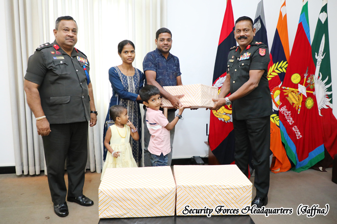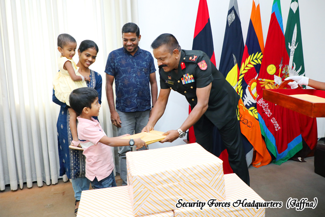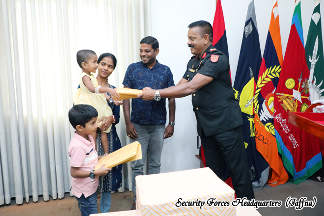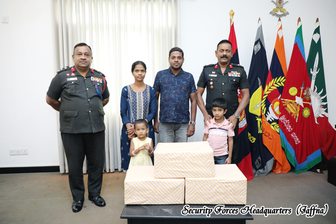 In a most heart touching act of humanity sparked by a child's empathy, a family from the Jaffna region has come forward to support the education of children displaced by Cyclone Ditwa. Acting on the thoughtful initiative of their son, Mr. S Thirumavan and his family members donated school equipment valued at Rs 30,000 to the Jaffna Security Forces on December 10, 2025.
