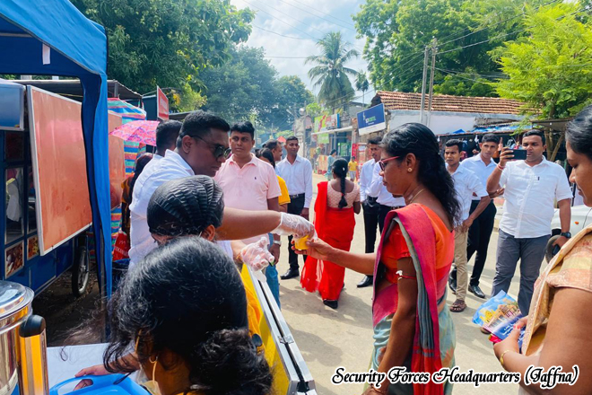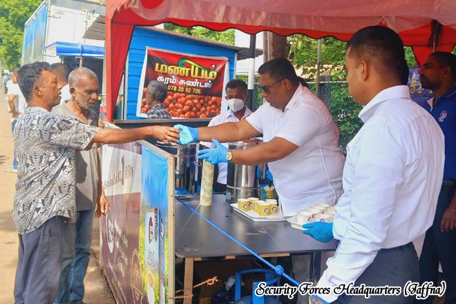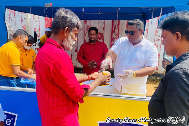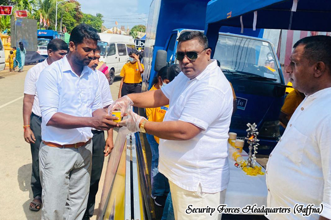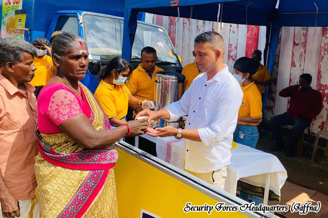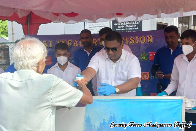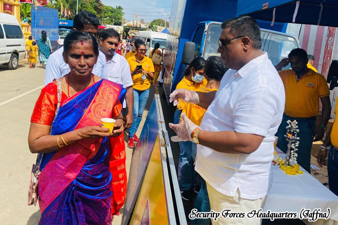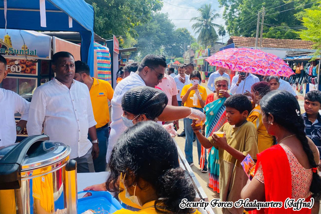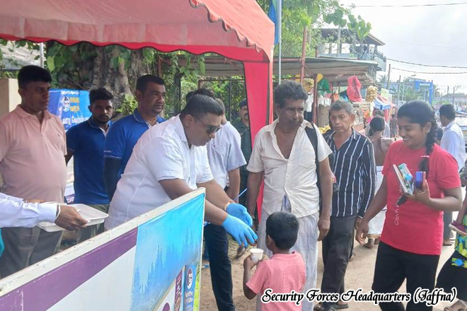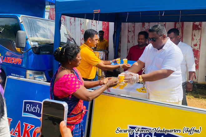 In alignment with the vision of the General Officer Commanding of the 51 Infantry Division, Major General MPNA Muthumala USP psc a special community welfare initiative was conducted at Nallur Kandaswamy Kovil, Jaffna with supporting of Pure Dale Ceylon Ltd and Rich life Diary Ltd on 20th, 21st and 22ndAugust 2025. The programme followed by a heart worming gesture of offering 51000 milk cups for devotees during the Nallur festival at Nallur Kandaswamy Kovil, demonstrating the Sri Lanka Army’s commitment to social responsibility. The General Officer Commanding of 51 Infantry Division, Major General MPNA Muthumala USP psc graced those occasions as the chief guest with presence of senior Army Officers.