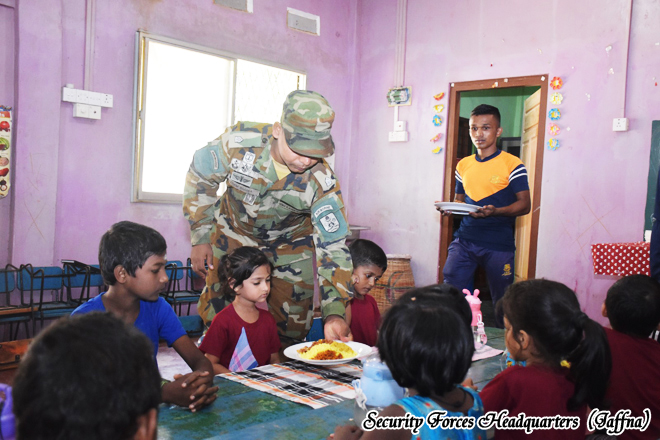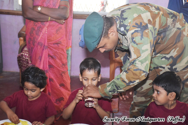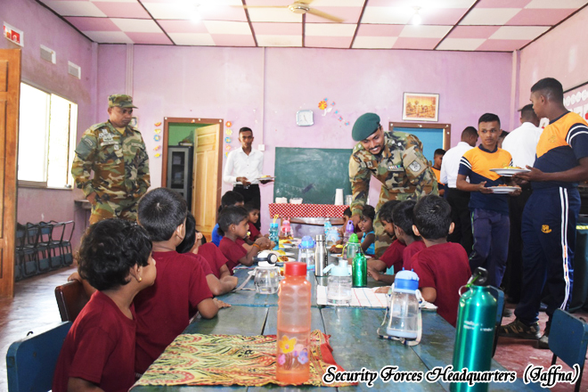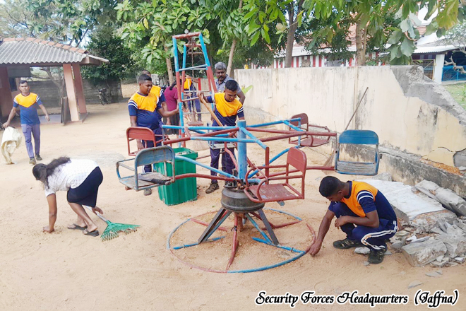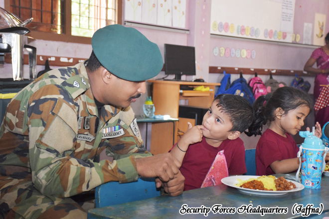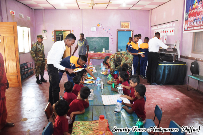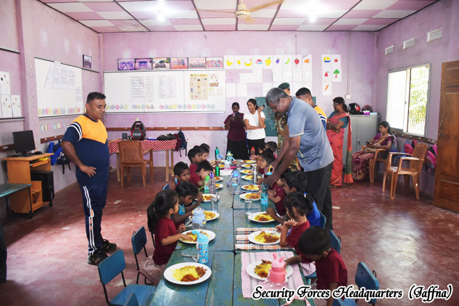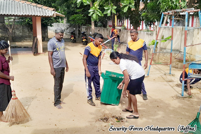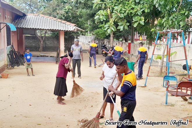 A community service program organized by the troops of the 4th Battalion of the Sri Lanka Sinha Regiment, under the 521 Infantry Brigade of the 52 Infantry Division of the Jaffna Security Forces Headquarters, was successfully conducted a cleaning programme and provided lunch for Kaleimathi Preschool with the leadership of the Commanding Officer of the 4th battalion Sri Lanka Sinha Regiment, Major H.M.P.K. Bandara RSP USP psc The event was held on 05 January 2026 from 0900 hours to 1230 hours with the participation of 03 preschool teachers, fifteen parents, and twenty students.