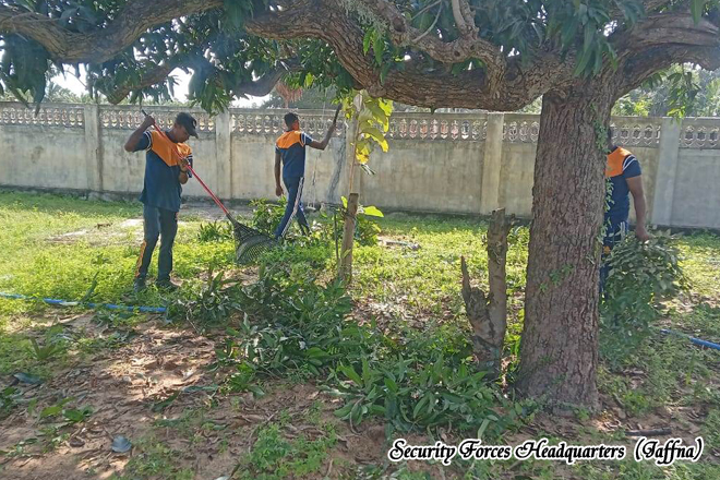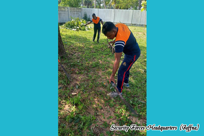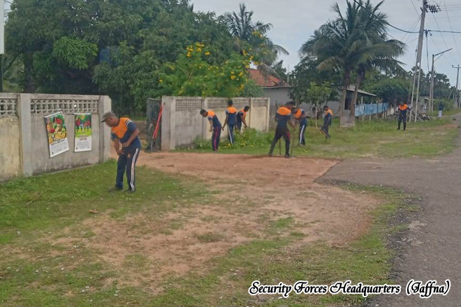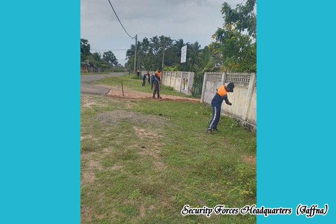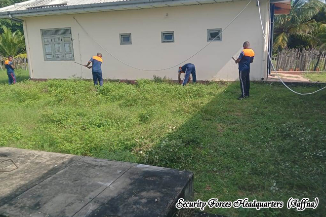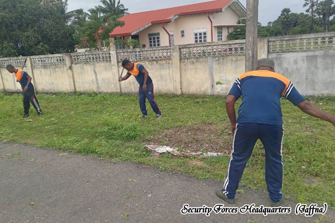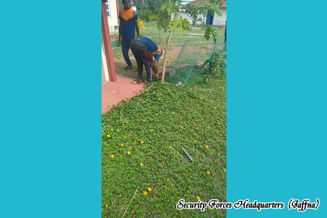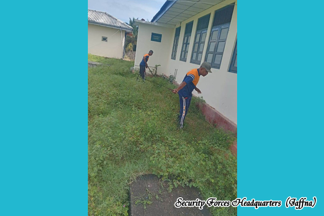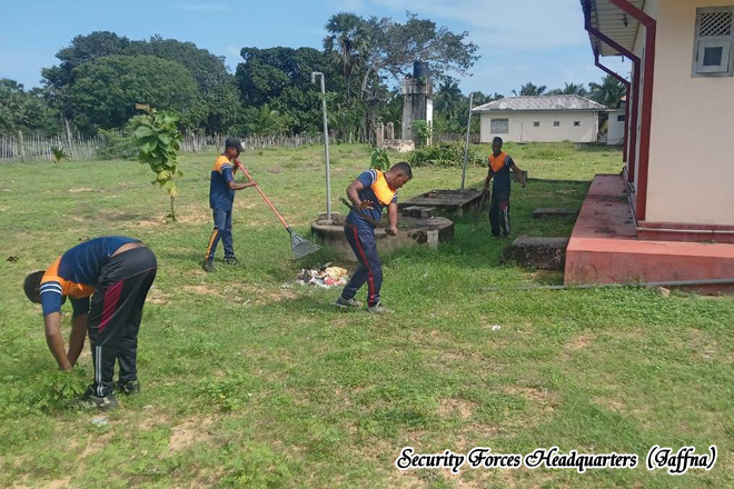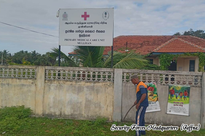 Due to the prevailing adverse weather conditions, there was a large amount of garbage inside the premises of the Primary Hospital in Mullian, and Troops of 10 (Volunteer) Vijayaba Infantry Regiment and the hospital staff jointly carried out a cleaning programme at the medical facility.