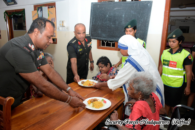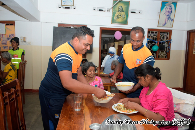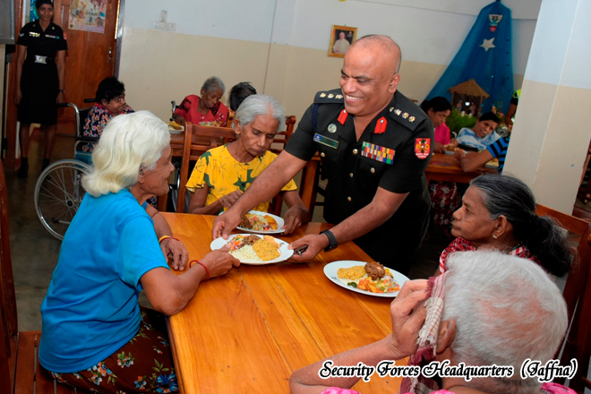 During the programme, lunch and essential sanitary items were distributed among 40 beneficiaries, mainly senior citizens residing at the home. In addition, troops of the 51 Infantry Division carried out a comprehensive cleaning of the elders’ home premises, thereby contributing to the improvement of their living environment. This initiative served as a heartwarming and persuasive demonstration of the Sri Lanka Army’s practical commitment, under the aegis of Security Forces Headquarters Jaffna, to social responsibility, compassion and meaningful community engagement, with the 51 Infantry Division playing a decisive and leading role in translating intent into action, particularly during occasions of cultural and religious significance.