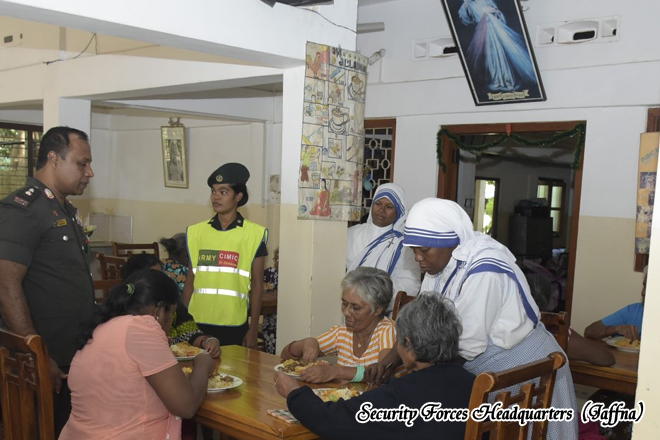 As part of its sustained commitment to humanitarian outreach and civil military engagement, the 51 Infantry Division, operating under Security Forces Headquarters Jaffna, carried out special Christmas alms giving programme on 25 December 2025 at the Mother Teresa Elders Home, Irupalai, Kopay. The initiative, guided by the vision of the General Officer Cokommanding 51 Infantry Division, Major General MR Razick RSP ndu, was executed within the civil military cooperation framework of Security Forces Headquarters Jaffna, with the aim of strengthening social cohesion, promoting humanitarian values and providing tangible institutional support to vulnerable segments of the community.