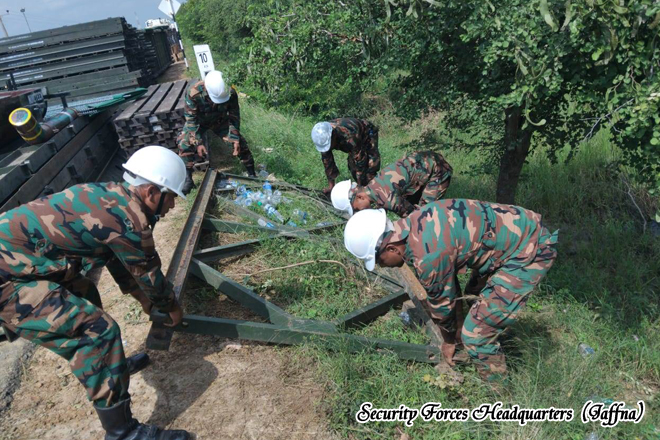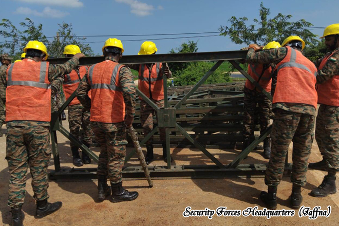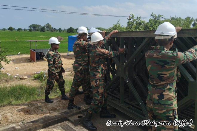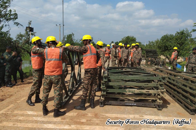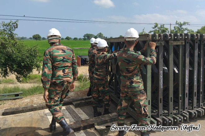 For this task, a total of 01 Officer with 16 soldiers from the 6 Sri Lanka Sinha Regiment 01 Officer with 15 soldiers from the 9 Sri Lanka Engineers Regiment and 01 troop from the Corps Engineer Services were deployed. In addition, 14 personnel from the Road Development Authority also participated, providing assistance to 22 members Indian Army contingent, including engineers, who are engaged in the construction of the new bridge.