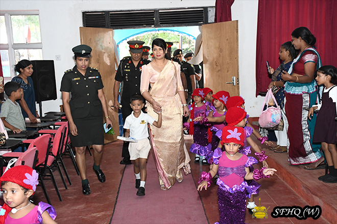 The ceremony was honoured by the presence of the Chief Guest, Mrs Anushani Kulatunga, Senior Member in Charge of the Ipalogama Viru Kekulu Pre-School, together with the Commander, Security Forces Headquarters – Wanni, Major General K M P S B Kulatunga RSP ndc psc, Senior Army officers, members of the Seva Vanitha Unit, parents, teachers, and well-wishers were also in attendance, adding further dignity to the event.