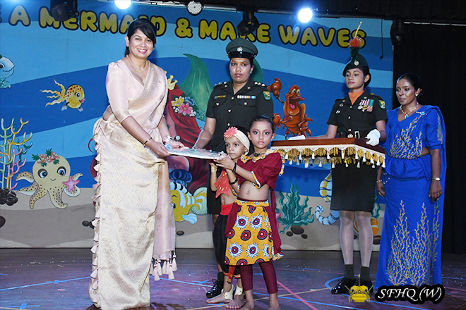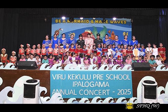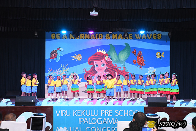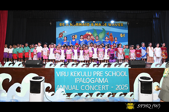 The 2025 Annual Variety Show of the Ipalogama Viru Kekulu Pre-School, functioning under the full supervision of the Seva Vanitha Unit for the welfare of children of Army personnel and civilian employees, was held in a proud and colourful manner at the Kekirawa Central College Auditorium under the theme “Become a Sea Mermaid Who Makes Waves.”