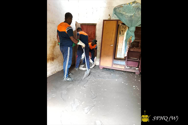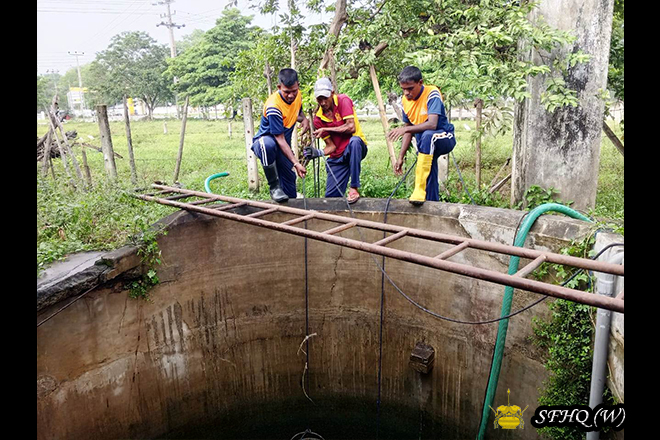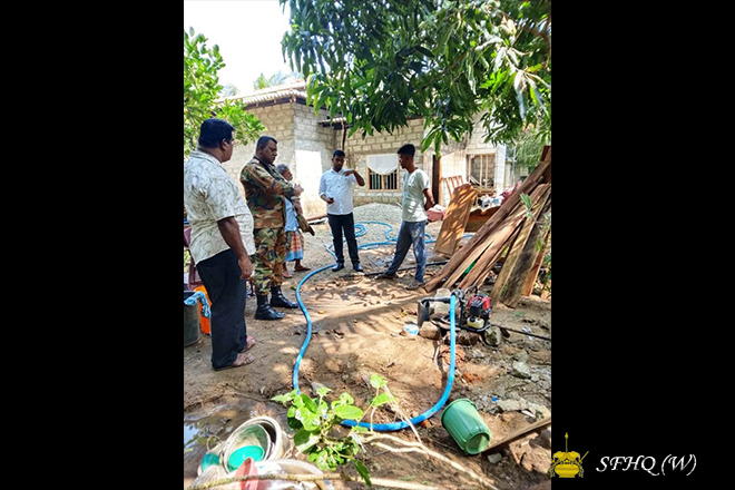 Furthermore, troops of the 4 Sri Lanka National Guard carried out cleaning operations at the well of the Anuradhapura Bhikkhu University. They also repaired approximately 1 km of road in Rajanganaya Track 09 village, which had been damaged by the disaster, and assisted residents in cleaning eight polluted houses in the affected area.
