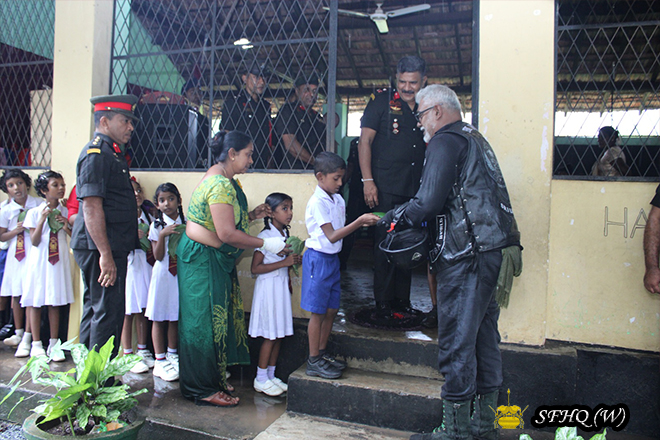 The event was graced by the General Officer Commanding of the 56 Infantry Division, the Commander of the 563 Infantry Brigade, Principal Staff Officers of the Division, the Commanding Officer of the 8th Gemunu Watch, Mr Nalitha Dissanayake and his family, along with members of the Free Biker Alliance World – Sri Lanka. Principals of both schools, Mrs Niroshani Wimaladasa and Mrs U H A I Dissanayaka, together with teaching staff and parents, were also present.