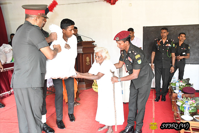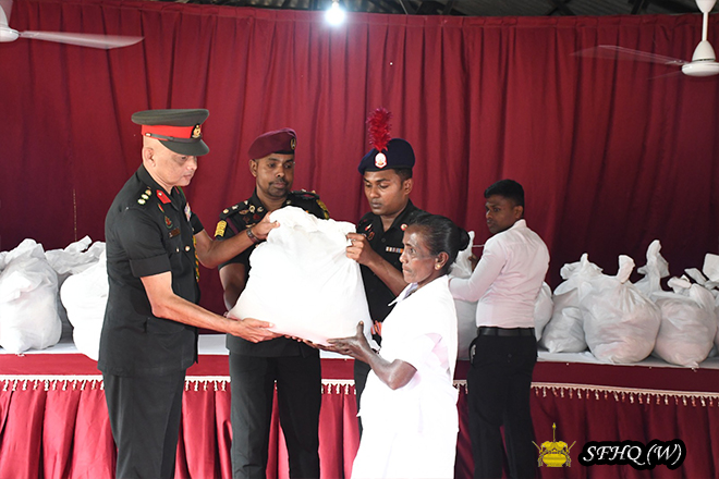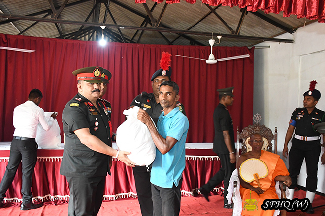 The programme was fully organized and coordinated by the 8th Battalion of the Gemunu Watch, with the objective of uplifting vulnerable families and strengthening civil military cooperation within the area of responsibility of the 56 Infantry Division. The dry ration packs distributed during the event were generously donated by the Diyawadana Nilame of the Sri Dalada Maligawa, Kandy, reflecting a strong spirit of religious harmony and social responsibility.