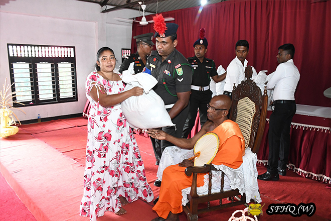 Under the guidance of Major General K M P S B Kulatunga RSP ndc psc, Commander, Security Force Headquarters (Wanni) the 56 Infantry Division conducted a dry ration distribution programme for low-income earners at Sri Sudharmarama Viharaya, Atambagaskada, on 03 January 2026. Religious blessings and spiritual guidance for the event were provided by the Chief Incumbent of the temple, Sri Saddharma Keerthi Sri Sumana Siddhartha Venerable Atambagaskada Kalyanatissabhidana Nayaka Thero.