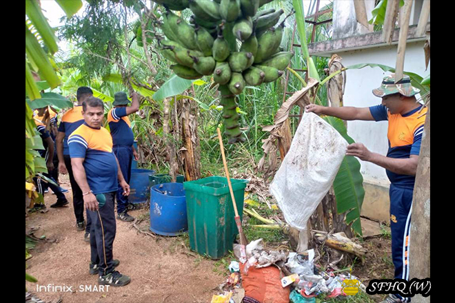The programme was further strengthened by the active participation of officials from the Health Services Department, other government agencies, local civilians, and school students. This collective initiative enhanced community awareness on dengue prevention while reinforcing civil–military cooperation and the shared responsibility of maintaining a clean and healthy environment.