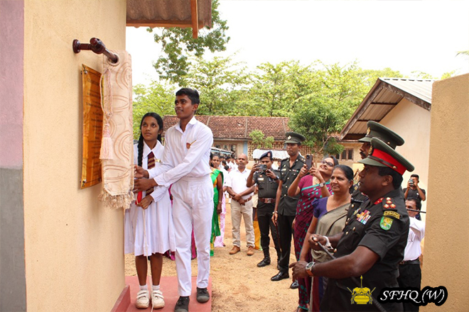 In conjunction with the 76th Army Day celebrations, and under the guidance of the Commander Security Forces Headquarters (Wanni) and the directions of the General Officer Commanding 21 Infantry Division, the 212 Infantry Brigade, under the close supervision of its Commander, Brigadier B A M P Balasuriya RSP, successfully completed the renovation of all existing sanitation systems and the construction of a new sanitary facility at Kagama Dathusena Vidyalaya.