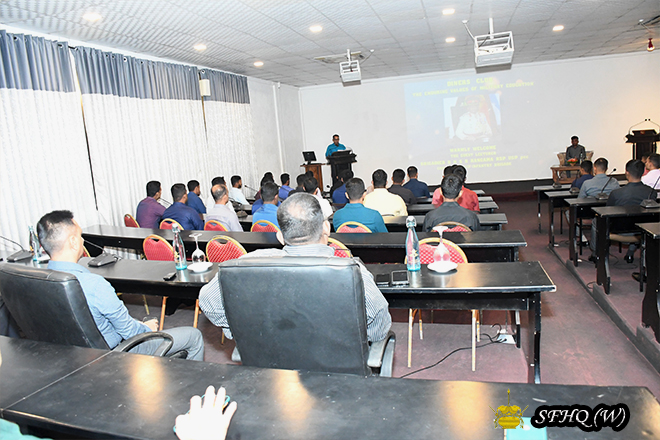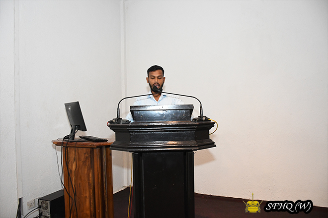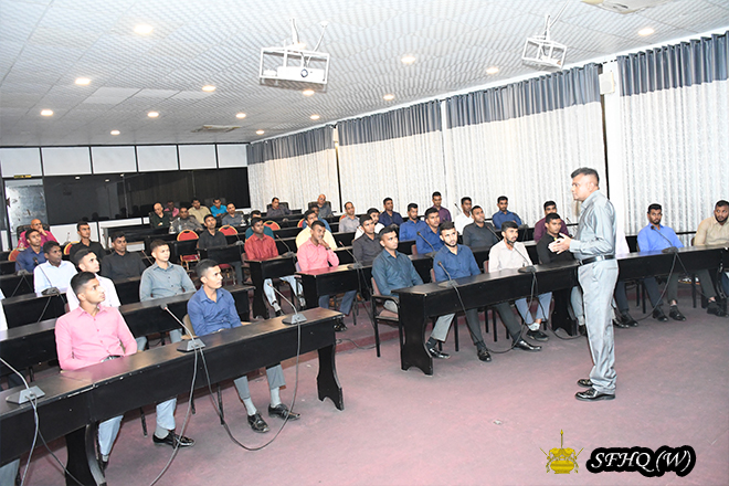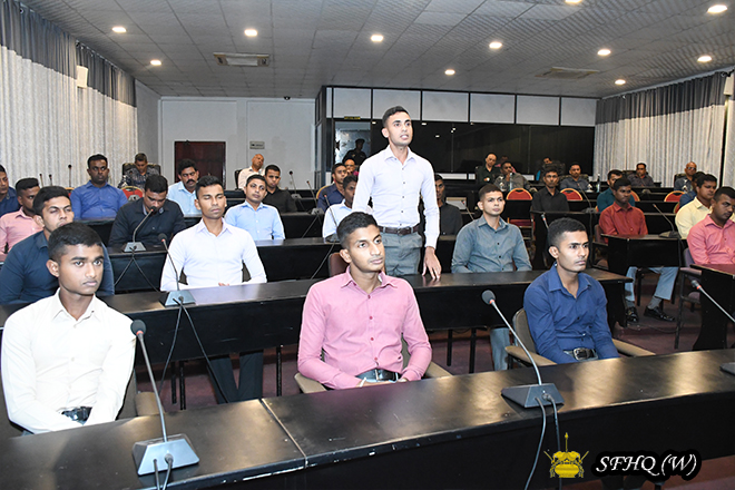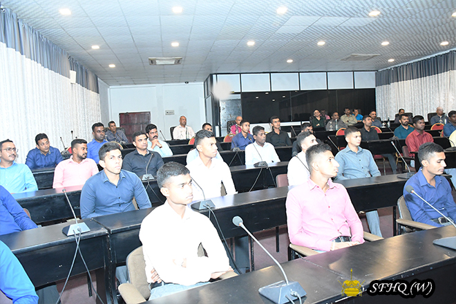 Under the guidance of the Commander Security Forces (Wanni), Major General K M P S B Kulatunga RSP ndc psc, the second Diners Club Program was successfully held on 20 November 2025 at the 3D Lecture Hall of Security Force Headquarters (Wanni) with the participation of Young Officers’ following the Unit Administration and Account Course and the staff officers of the SFHQ(Wanni).