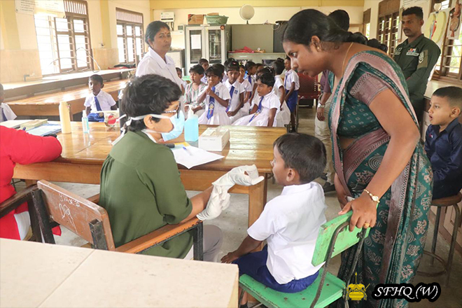 Under the guidance and direction of the General Officer Commanding of the 54 Infantry Division, Major General A M C Abeykoon RWP RSP USP ndc, and in conjunction with the celebrations of the 78th National Independence Day, a medical camp was conducted for school children and teaching staff on 03.02.2026 from 0830 hours to 1500 hours at MN/Kattadampan Roman Catholic Tamil Maha Vidyalaya, located within the Area of Responsibility of the 4th Gajaba Regiment, under the 542 Infantry Brigade.