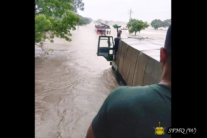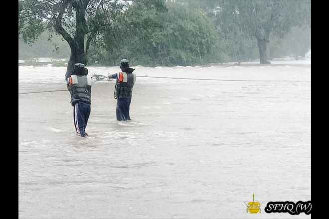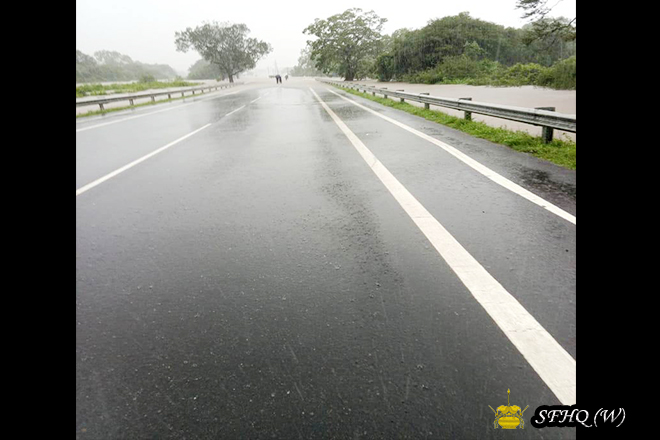 All civilians were safely escorted to the MITC until water levels receded. Once conditions improved, the 56 passengers were provided with another bus and departed the MITC. The remaining 25 passengers also left the centre today.